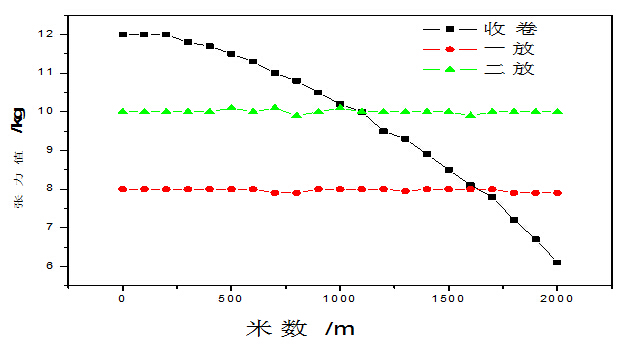 改造后通过试运行,效果较为理想,我们对改造前后收放卷张力、实际生产单耗情况做了一个比较,见下图8、9、10:
